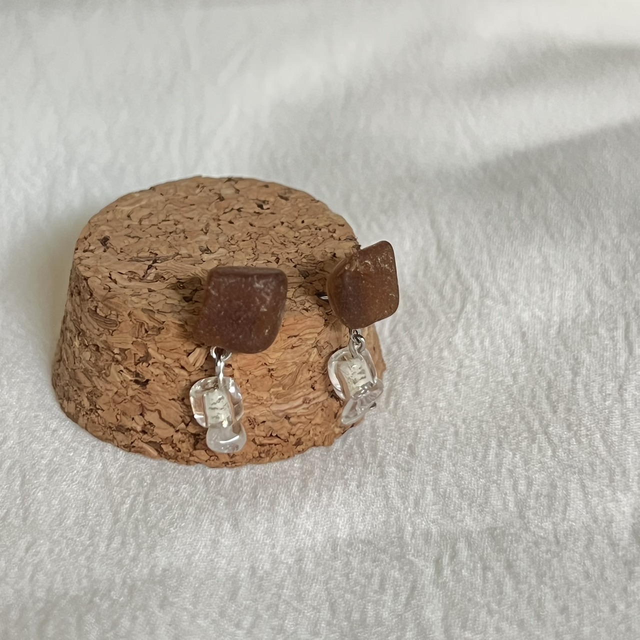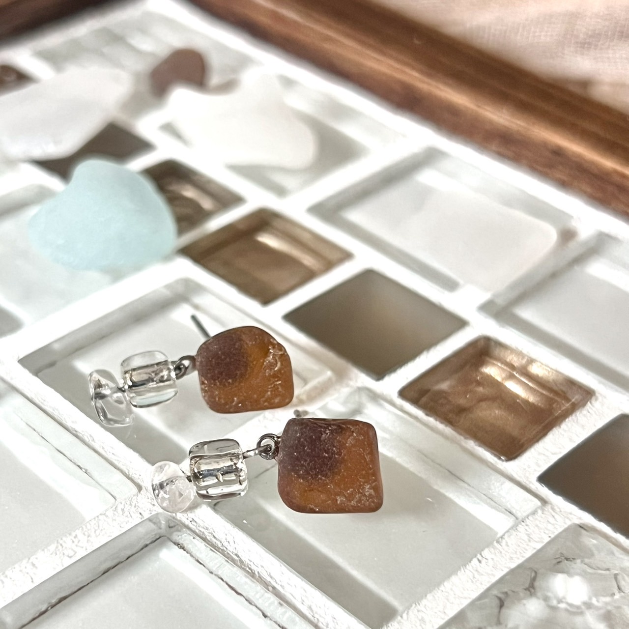 波雫(なみしずく) - Wave Drops|一点ものシーグラスピアス(silver × brown)・ガラス&クリスタルの海色アクセサリー | ton propre tresor