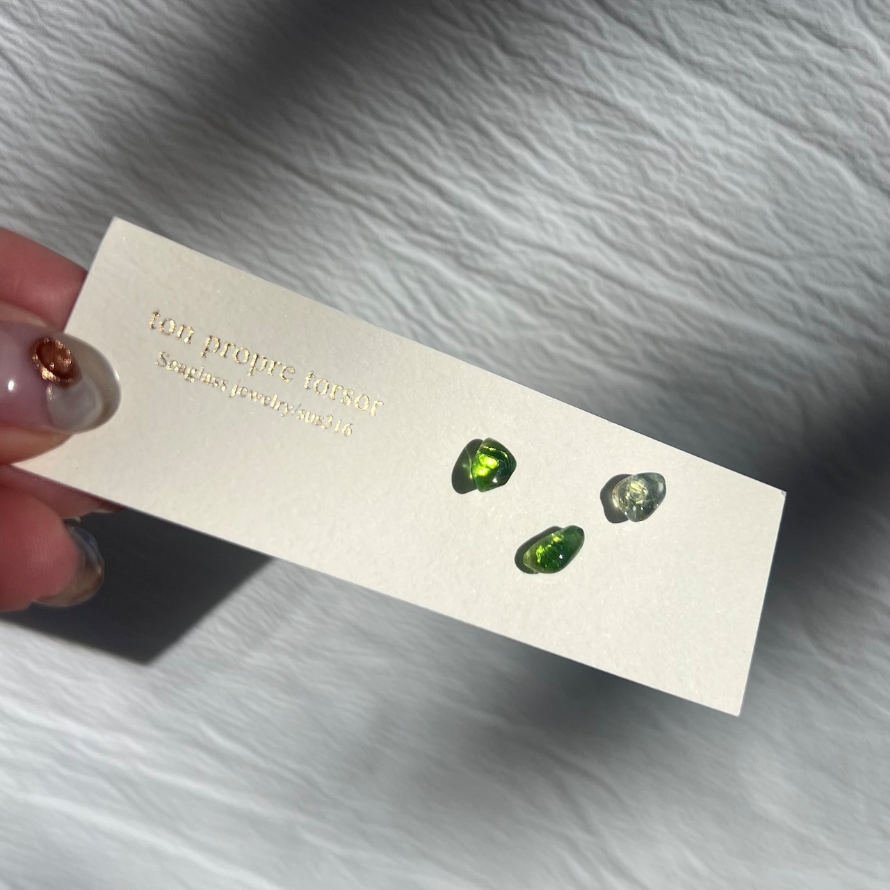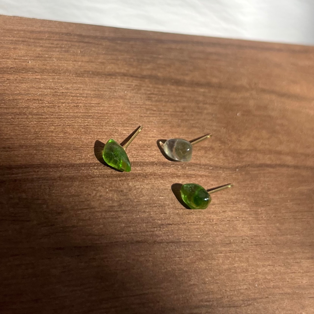〜No,2 緑*緑*白〜スタッドピアス GOLD 3粒
