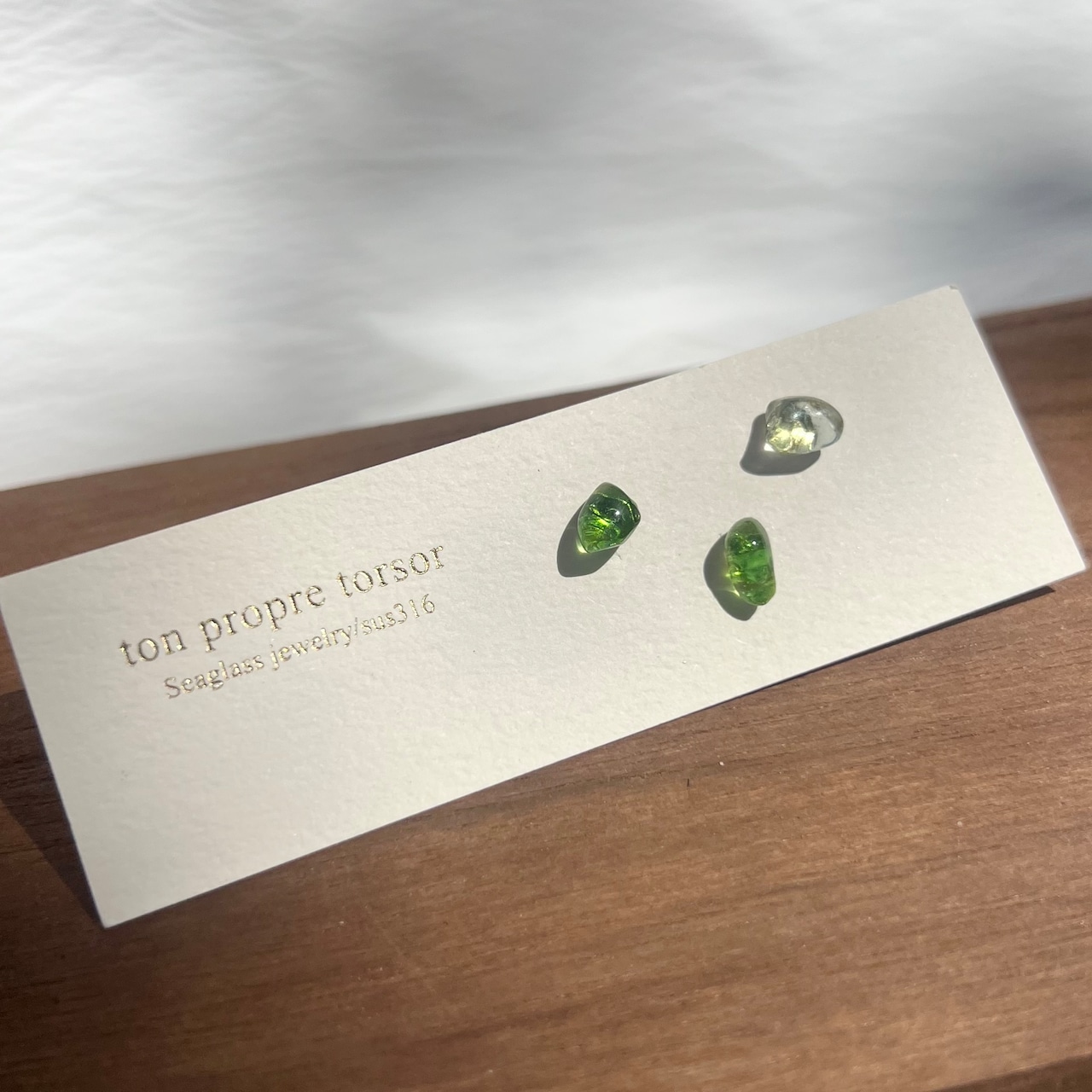 〜No,2 緑*緑*白〜スタッドピアス GOLD 3粒 | ton propre tresor